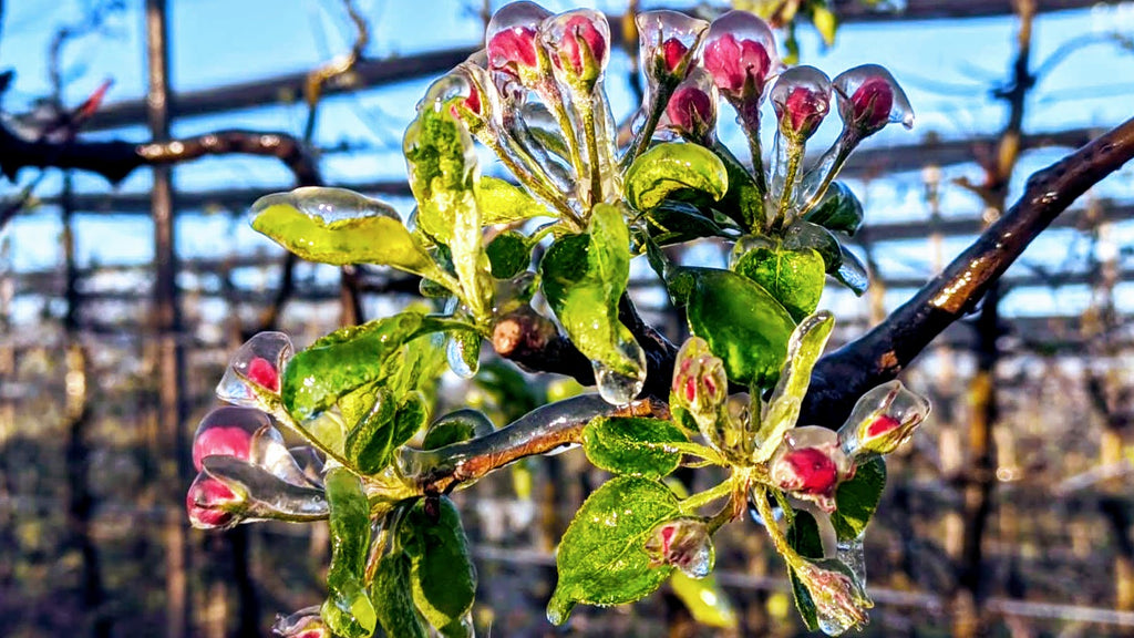 Анализ изменения климата и мониторинг производственного цикла производства продуктов питания открытого грунта за последние 5 лет свидетельствуют о возникновении ранневесенних заморозков как явления, существенно влияющего на урожайность. Наступление заморозков чаще всего приводит к потере всего урожая предстоящего сезона, и даже страховка рода не покрывает всех потерь. Поэтому необходимо применять активные меры защиты и снижать риск производства пищевых продуктов. Одним из таких защитных мероприятий является система защиты от мороза (дождя), в основе которой лежит явление водной аномалии, когда при переходе воды из жидкого состояния в твердое выделяется энергия. Эта энергия используется для поддержания температуры цветка и молодых плодов в диапазоне от 0 до 2 °С. При такой защите насаждений над цветком и плодами образуется ледяная корка, температура которой 0°С. Этот лед защищает плантацию с эффектом иглы (идеальный изолятор). В современных системах защиты применяется технология создания полностью насыщенного воздуха (100% относительной влажности) в защищаемом микроклимате, что приводит к значительной экономии необходимого количества воды при защите, что исключает испарение и экономит энергию, необходимую для поддержания тонкостенного кристалла льда. структуры при 0°С. Дальнейшее развитие технологий требует динамической модели работы систем с переменной интенсивностью осадков в зависимости от текущих погодных условий. Причиной этого является необходимость сохранения кристаллической структуры льда (прозрачного льда) при оптимальном потреблении воды в течение всей ночи для обеспечения защиты плодов от отрицательных наружных температур. Параметрами, которые могут повлиять на кристаллическую структуру льда, являются температура, влажность, ветер и интенсивность капания воды с размером капель. Основной целью данного исследования является анализ влияния параметров замерзания воды на толщину и прозрачность защитной структуры льда. Полученные результаты послужат основой для разработки перспективного управления системой защиты от замерзания и разработки новых типов оросителей с переменной интенсивностью осадков.